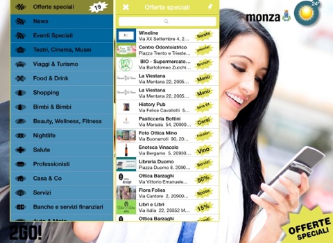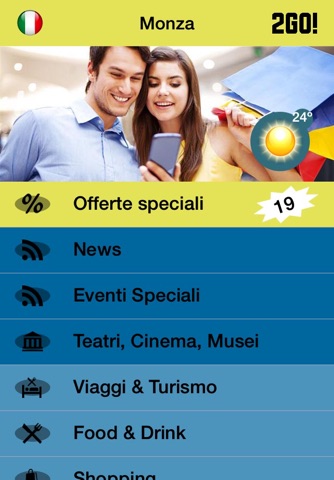 L’applicazione 2GO! Monza fornisce informazioni sulla città di Monza e sulle imprese locali in modo facile per l’utente. L’applicazione offre ai residenti ed ai visitatori una guida facile e dettagliata su entrambe le versioni smartphone e tablet. Le informazioni sulla città sono organizzate in un menù logico e facilmente accessibile all’utente, consentendogli di rimanere aggiornato su notizie, eventi della zona e sulle migliori offerte dei diversi esercizi commerciali.