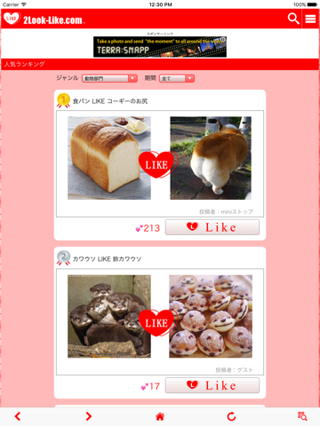 誰でも気軽に、似ている人(物)の2つの写真(動画)をならべて投稿、掲載して楽しむことができます。