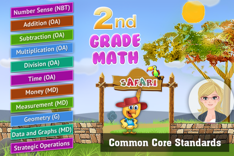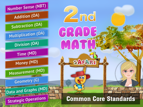 LogTera 2nd Grade Math is a unique app combining comprehensive learning with high-quality entertainment and fun for children ages 4 to 8 years. The app has a captivating Safari theme that keeps children engaged and motivated while learning new skills. Children answer math questions to earn coins that they can use to add more animals to the safari and to buy favorite food of their animals. Donna, the dinosaur is the safari guide who helps children navigate through the safari and the math questions. Children can take a break and visit the interactive safari where they can play with the animals. The app contains kid-friendly rich graphics, animations, voices, and intuitive click, drag and drop type question templates that are easy for children to follow without parent or teacher supervision. The app is aligned to common core standards and with over 1500 questions focused on developing core math skills in eleven areas: 1). Number Sense, 2). Addition, 3). Subtraction, 4). Multiplication, 5). Division, 6). Time 7.) Money 8.) Measurement 9.) Geometry 10.) Data and Graphs 11.) Strategic Operations