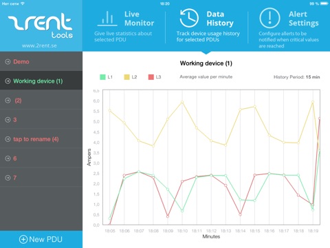 Download this fantastic app and watch your PDU monitor live. Be constantly up to date about what is happening with your power.