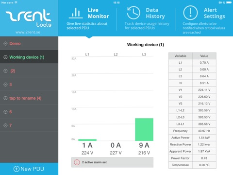 App is an online monitor for live PDU power usage.