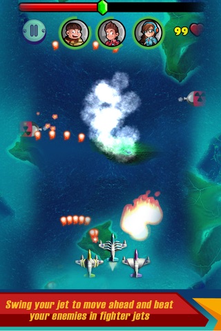 Swing your jet to move ahead and beat your enemies in fighter jets. In this jet fight, make sure that you are using your all fighting skills against the enemy. And the special thing is that you control 3 characters at the same time, so take advantages of it to overcome challenges and save the world.