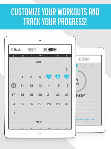 Keep on track with your progress with our inbuilt calendar and circuit tracking system. Whether you prefer a 5 minutes or 15 minutes every day, a regular workout is important, so let us help you fit exercise into your busy life!.