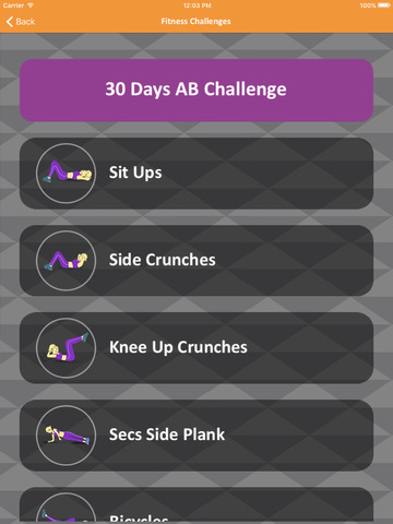 This app has a fitness program which runs you through 12 different exercises with a thirty second timer and a 7 second rest timer. Additionally, there is a database for tracking your exercise days and separately your weight for yourself and your exercise buddies.