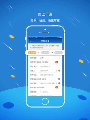 只需 3 步,在线提交申请信息,验证个人资料,快速获得额度