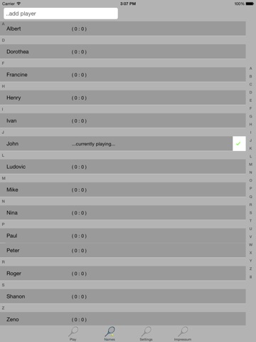 Therefore, this app suits especially well for tennis teachers that need to take track of match-time with several different tennis players. But also private persons that like having a small statistics over their played tennis adversaries and friends.