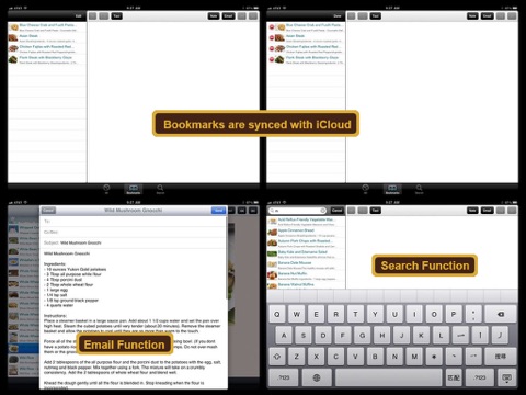 * Ability to BOOKMARK selected recipes for easier reference