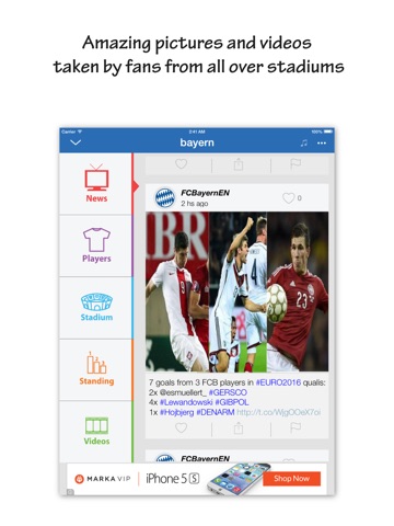 Get ready for the game, Live every moment, goal by goal & whistle by whistle, Excitement just like the stadium, Amazing pictures and videos taken by your best players and by fans from all over the top stadiums, this app takes you to the heart of each match.