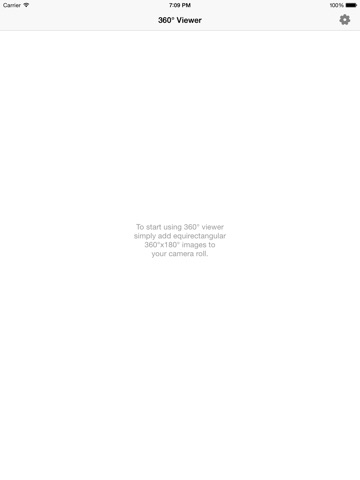 Add equirectangular (360°x180°) images to your photo gallery by saving them in your camera roll or syncing them using iTunes.