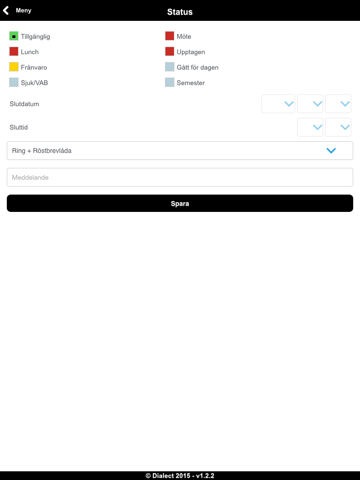 Du kan på ett enkelt sätt styra din telefon i appen och tala om för telefonisten, kollegor och partners att du är upptagen samt när du åter är anträffbar.