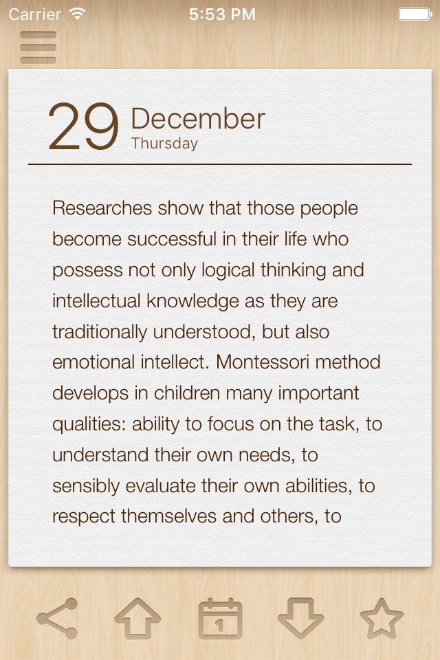 Reading of a note will take you from one to five minutes per day. Isn’t it a small pay for everyday improvement of relationships with your child? By adding notes to Favorites you can collect a selection of messages that are important for you. They can be used as affirmations - to be read, absorbed and implemented.