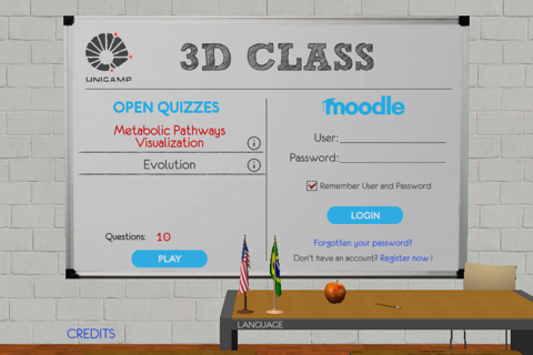 The 3D Class brings users to play games while learning, and to learn while gaming. For the students enrolled in courses that are available in a Moodle server, the 3D Class can be used to access them from iOS enabled devices.