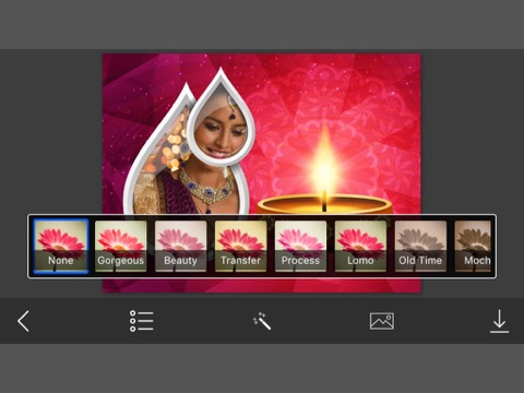 - Two Finger Gestures to ZOOM your photo and adjust in the diwali photo frames.