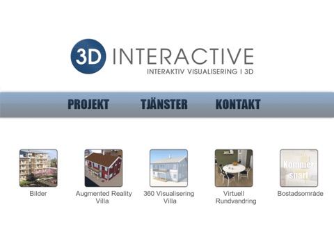 Detta är 3D Interactives officiella app som visar ett axplock av vad vi kan hjälpa företag med inom 3D visualisering. Apen innehåller visning och rundvandring inne i en lägenhet, hur ett bostadsområde som ännu ej är byggt kan visualiseras, exempel på våra säljande annonsbilder i 3D samt hur en villa på ett smart sätt kan presenteras exteriört samt interiört.