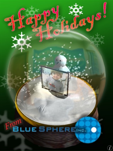 Customize the picture frame being held by the snowman with any picture in your photo library, or take a new one instead.