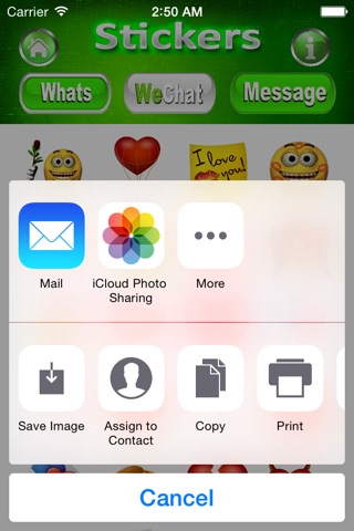 2. Select the button of Whats, WeChat or Message and Paste the Sticker in the Box