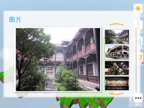 智游天下景区移动导览系统可以为主体客户定制不同景区的三维景观和导览信息。系统除了对景区进行图片、文字、视频的常规介绍外,还加入了语音解说,三维导览,趣味任务等新颖形式使用户全方位了解景区信息,融入景区活动;并通过野史故事、附近景点、照片分享等内容丰富其文化内涵,加深导览系统体验链条。
