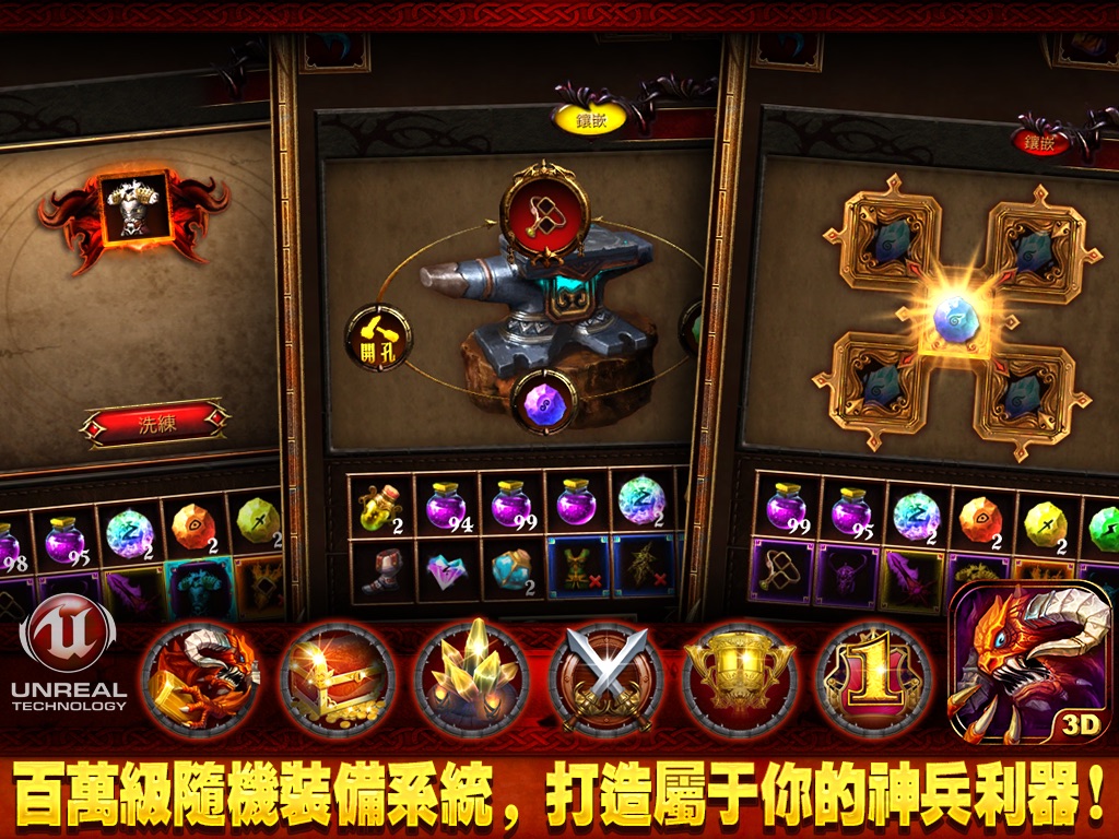 主動技、被動技、冰系、火系、雷系、憤怒系、聖光系、戰技系,最完備的技能系統,自由組合、隨心所欲,打造屬於自己的王者之路。