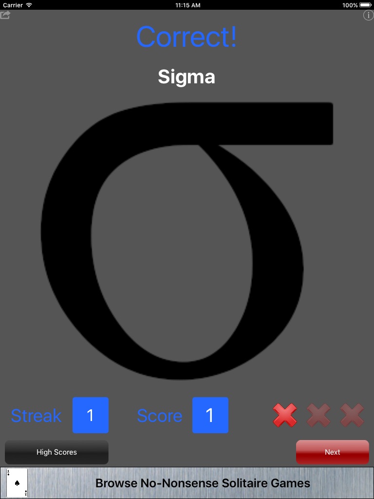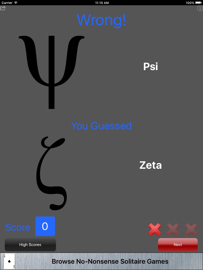 Learn the symbols of the Greek Alphabet with this quiz game. Get three wrong and the game is over.