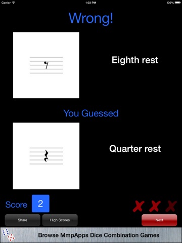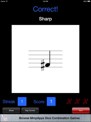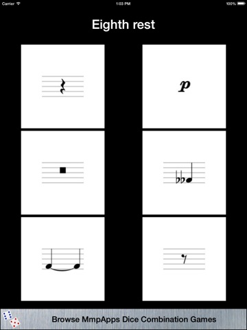 Learn the notation of musical theory. Given the name of a symbol you must pick the correct symbol from a set of six. Get as many correct as you can but get three wrong and the game is over.