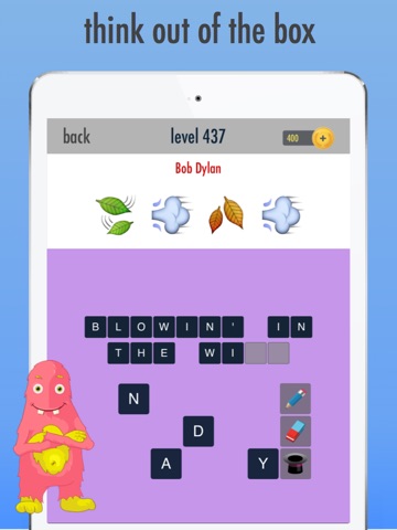 • 450 levels of songs represented by their artists and 4 emoji symbols to guess