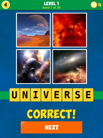 • The pictures are revealed one by one. Guess the word with less pics and earn extra coins!