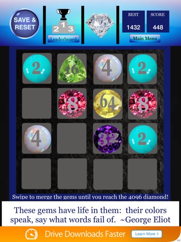 >Simple controls. Just swipe left, right, up and down to match gems. When two gems touch they will merge and morph into a new, higher value gem.
