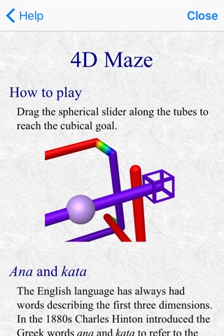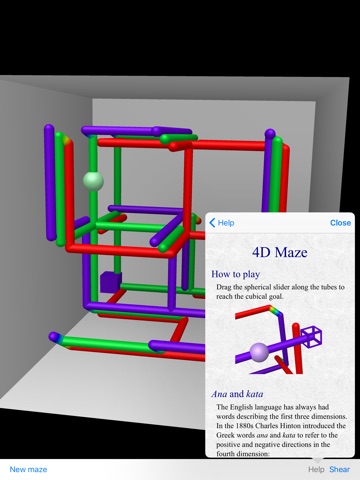 Drag the slider to the goal, following tubes that snake around in four dimensions. 4D Maze draws the first three dimensions in the usual way, while using color to represent the fourth dimension.