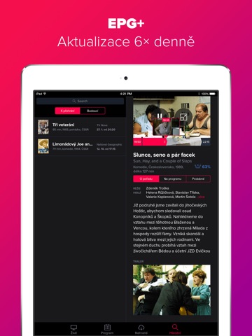 - rozšířené informace o pořadech