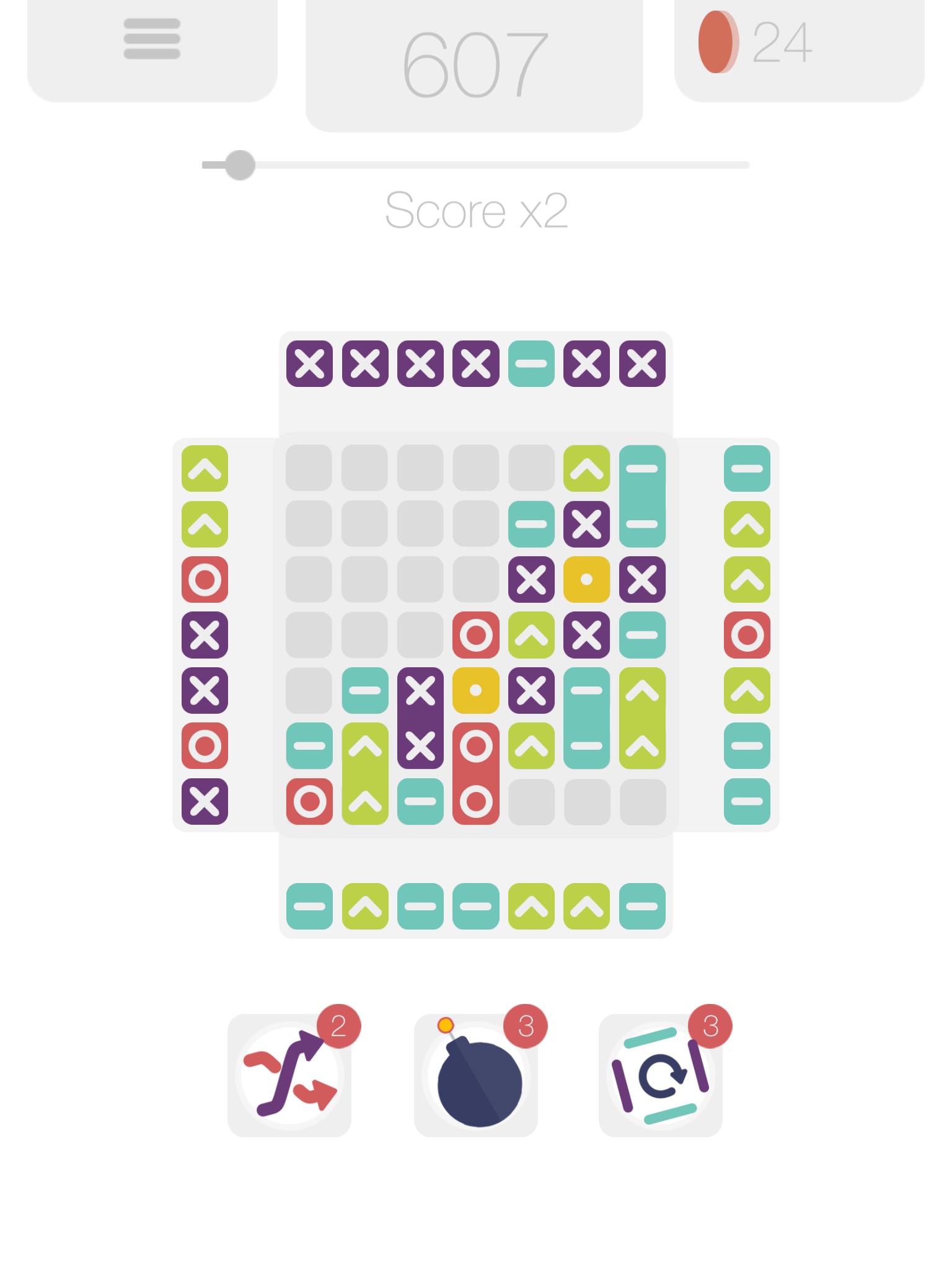 Swipe to move the side tiles and gather at least 3 tiles of the same collor to collect them. The more you play, the more points you get because of the Level Score Multiplier System.
