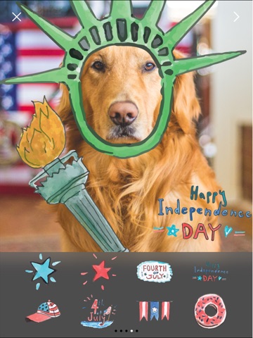 Fill the 4th with stickers! Turn your photos into a celebration with many fantastic, free smiley stickers. Extremely simple and easy to use!