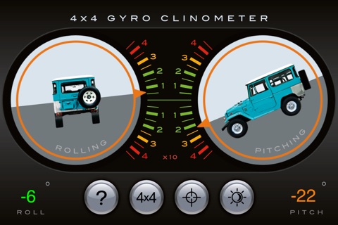 Très bonne app! Deux remarque: 1) on pourrait peut être utiliser le gyroscope des nouveaux iPhone pour plus de précision et un mouvement plus fluide. 2) ensuite, quand on est dans un dévers à droite, le véhicule représenté penche encore plus à droite. Soit leffet inverse des niveaux à bulle de nos vieux 4x4...
