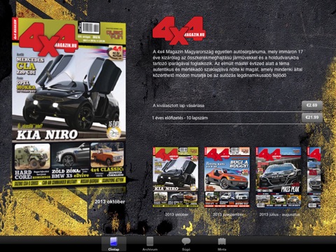 A 4x4 Magazin Magyarország egyetlen autósorgánuma, mely immáron 17 éve kizárólag az összkerékmeghajtású jármûvekkel és a holdudvarukba tartozó iparágával foglalkozik. Az elmúlt másfél évtized alatt a téma autentikus és mértékadó szaklapjává nõtte ki magát, amely mindenki által közérthetõ módon mutatja be az autózás legdinamikusabb fejlõdõ szegmensét.