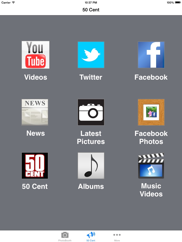 This application also include 50 Cent Twitter, Facebook, Videos, Facebook photos, Latest News & Latest Pictures. So this amazing app keeps you in touch with 50 Cent.
