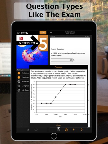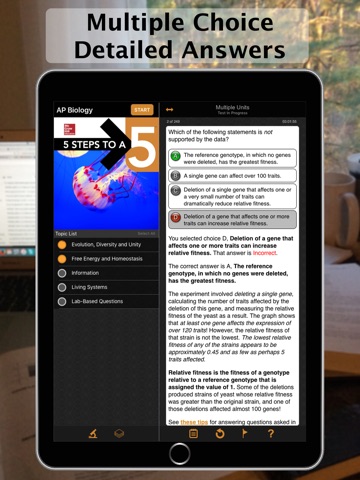 Add this little gem to your exam prep toolbox and kick your studying into high gear. Whether youve been studying for months or are just beginning to prepare, this app will get you where you need to be. With 500 separate multiple choice, grid-in, and free-response questions based closely on the material in the current AP Biology exam, this app is a comprehensive tool designed to test your current knowledge and master any unfamiliar material.