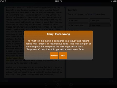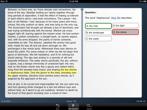 The questions and corresponding explanations are organized according to 8 literary genres, allowing for closer focus on weak areas. Feeling confident about your test readiness? Then take a practice test where you select the number of random questions included, from 25 to 500. Need more review of, say, British Poetry or World Fiction? Then select these categories for intensive review. Dont want the questions scrambled each time you take the test? This app allows you to turn off this feature in the settings menu.