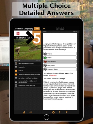 Add this little gem to your exam prep toolbox and kick your studying into high gear. Whether youve been studying for months or are just beginning to prepare, this app will get you where you need to be. With 500 separate questions and detailed answers based closely on the material in the current AP Human Geography exam, this app is a comprehensive tool designed to test your current knowledge and master any unfamiliar material.