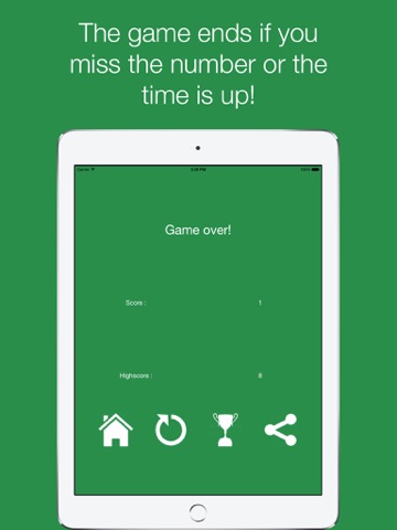 Tap as many numbers as you can in 30 seconds. If the number you tapped is the closest to the number appearing on the screen, your score increases by 1 and you get extra time (0.5 s).