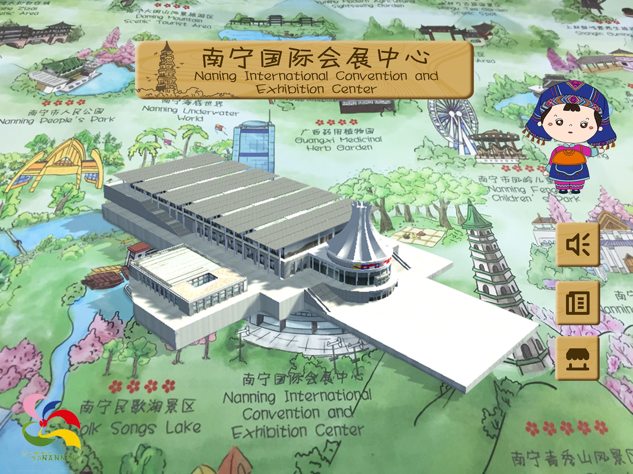 《手绘南宁AR地图》通过AR增强现实与传统旅游纸质导览图结合,通过扫描手绘地图上的景点让你身临其境的展现景区美妙景色。
