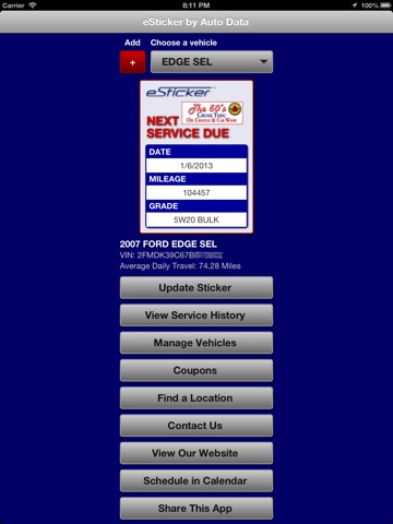 Stickers for multiple vehicles can be stored by the app so you can keep tabs on all your family vehicles or your companys vehicle fleet. You can even customize your oil change interval preferences individually for each vehicle.