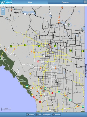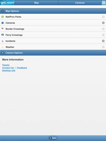 Has potential, and a good app for reporting current road conditions would be great. But in the interface, there are lots of places that lead to dead ends - you click to get information on something, and there is no "back" or "home" button concept, so the only way to get out is to forcefully quit the app and restart. What is the "GPS" button on the bottom supposed to do? It toggles between GPS and Stop, but doesnt show my position, or even bring up the iOS dialog asking if its OK. Also, I signed up as a "citizen reporter" (great idea!) and have been authorized, but havent figured out how to actually send reports in. Has potential to be useful, but could use quite a lot more polish than it has now.