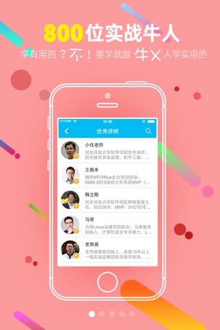 (李炎恢、王佩丰、马哥、韩立刚、小任老师、老男孩) 等800多位一线大牛专家讲师授课,传授个人技能,实战方法,亲身项目经验,让您学习后能更快的在工作中运用,面试无压力,职业晋升不费力