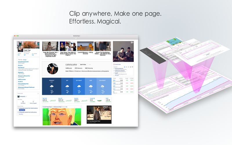 Clip any area in a web ,piece together these clips into one page. All clips are real-time and interactive.