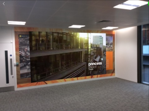 Using Augmented Reality, through your phone’s camera, it is possible to interact with the brochure, other printed materials, walls and floor tiles inside the building. Use the app to watch the 55 Princess Street video and view the current available floor spaces for yourself – take a 360, panoramic tour around the floor and view high-density layout space options, giving you an idea of what your potential offices could look like at 55 Princess Street.