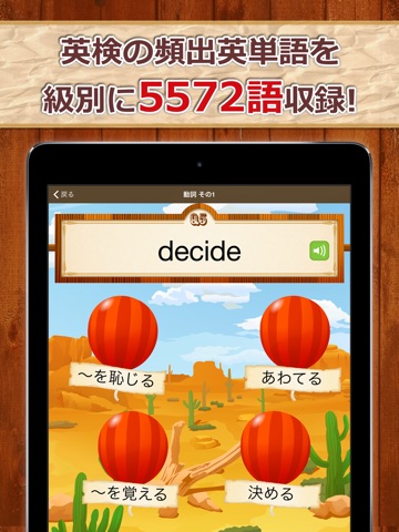 クイズ形式で、軽いタッチに仕上げてあって学ぶ堅苦しさは無いです。でも検定に向けた本格的なものなので遊ぶ感覚はかなり良いと思います。ただ訳の選択がたま〜に硬い。検定だからしょうがないのかな、とは思いますがもっとフランクな意味である語句もあります。