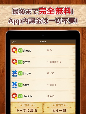 5問終わった後に間違えが表示されるし、発音してくれるからいい