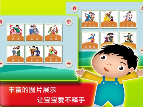 This is a part of a series of Chinese studying tools aimed at learning the 56 Nationalities in China, we have not specifically translated the words into other languages, just wish you learn Chinese in the real Chinese environment , to learn any language , the most important is to look himself as a child,As we know, the child is a genius while learning language.