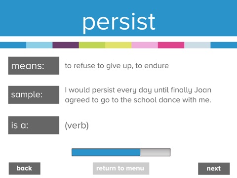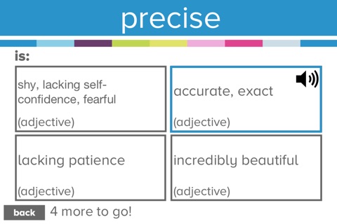 • Study hundreds of vocabulary words at your own pace with guided step-by-step learning