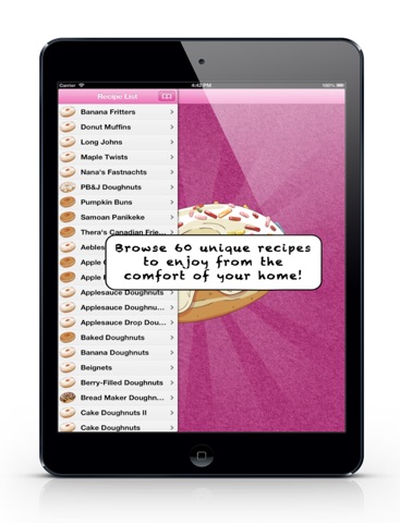 - Ad removal with an in-app purchase by tapping on the "doughnut recipes" header on the main recipes list