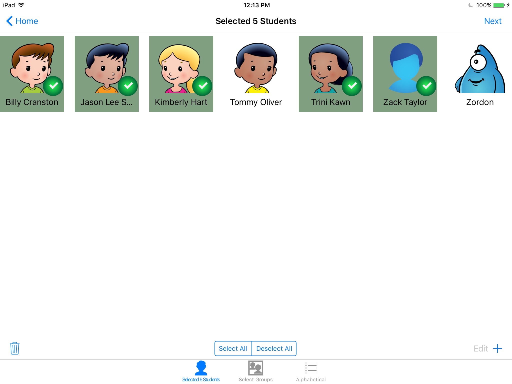 This application is simple to use — students just touch the screen to listen to a story starter, and then say or write what they think will happen next. Tap the refresh button to hear a different story starter. There are three different starters per image. To move to the next card, just slide the card to the side and the next image appears. To move to the next player, tap the bar at the top of the screen and select a name. You can also advance cards and players automatically by selecting the Auto-Advance option in the Settings menu. You can leave a game by selecting End from the menu. To return to the game, select Resume from the main menu. When you finish, view the results in a graph, and print or email your data.